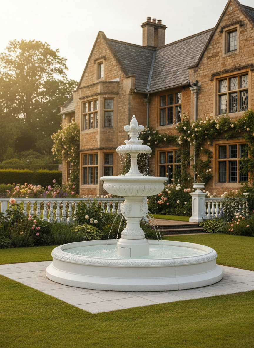 2‐poziomowa. Z każdego poziomu woda inaczej wydobywa się wytryskując. Ze względu na swoje niewielkie rozmiary fontanna ta doskonale nadaje się do niewielkich ogrodów, dodając im splendoru.