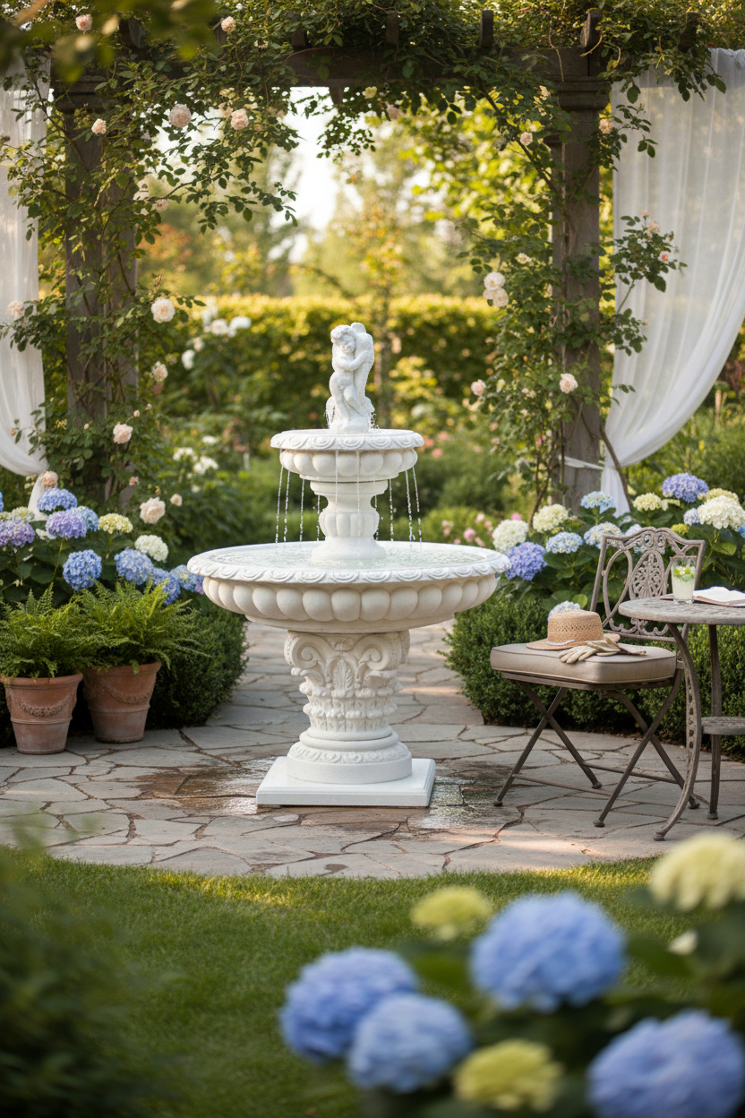 Idealna w proporcji fontanna, a chłopiec z rybką nadaje romantycznego szczegółu.