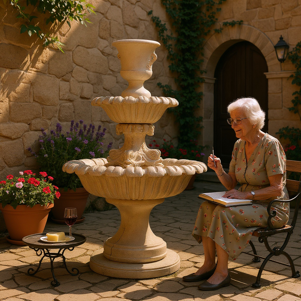 Fontanna składająca się z dwóch misek zwieńczonych piękną, klasyczną donicą przelewową.